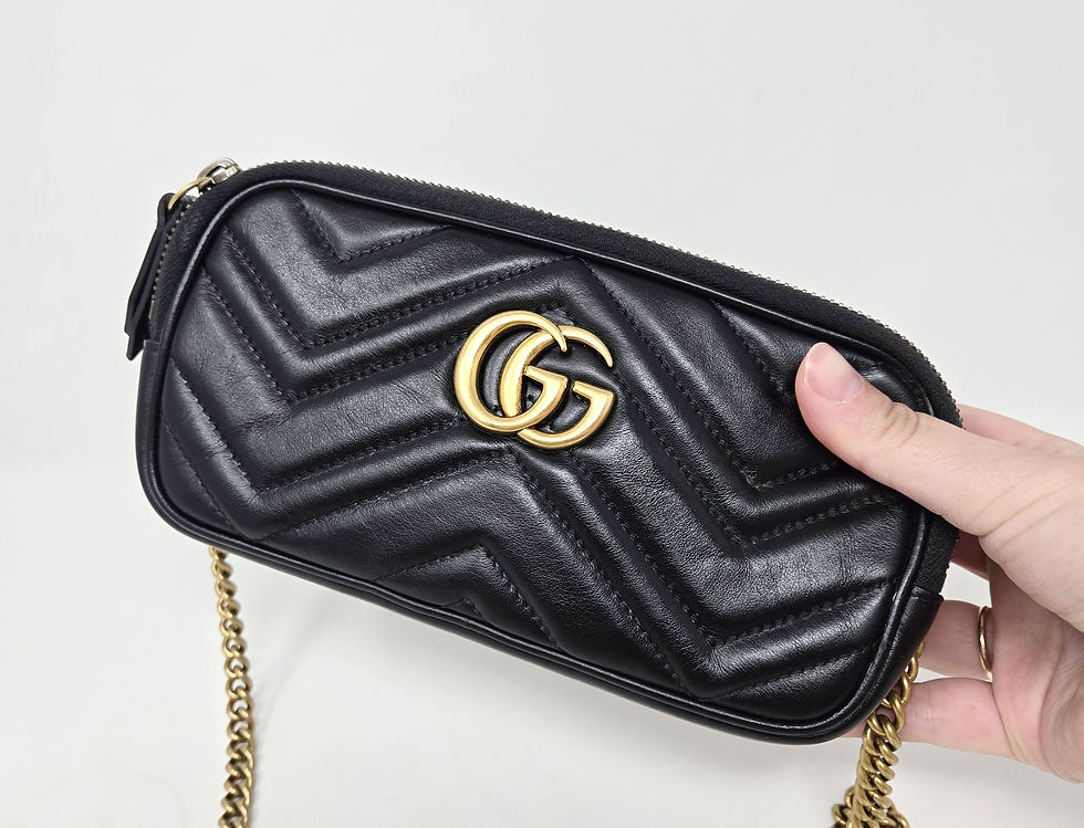 Gucci Black Marmont GG Triple Zip Crossbody Bag
